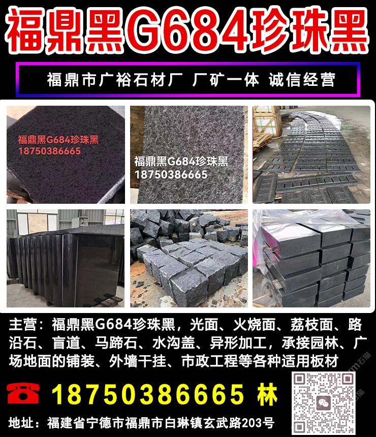 主營(yíng):福鼎黑G684、珍珠黑、芝麻黑G654,光面、荔枝面、火燒面、馬蹄石、盲道等。異型加工,承接經(jīng)營(yíng):市政園林,廣場(chǎng)地鋪,外墻干掛等各類適用板材