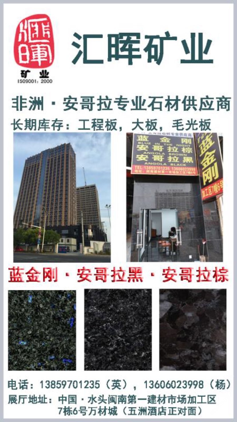 本公司主營(yíng)藍(lán)金剛,安哥拉黑,安哥拉棕,藍(lán)月亮,承接大型工地,展廳地址:建材市場(chǎng)加工區(qū)7棟6號(hào)