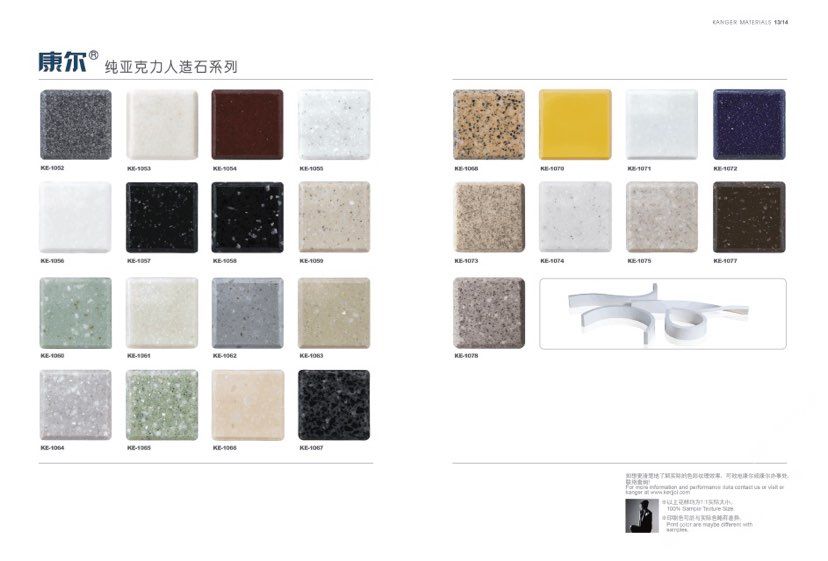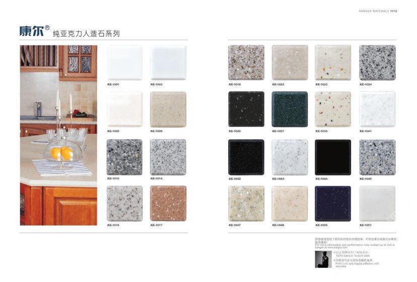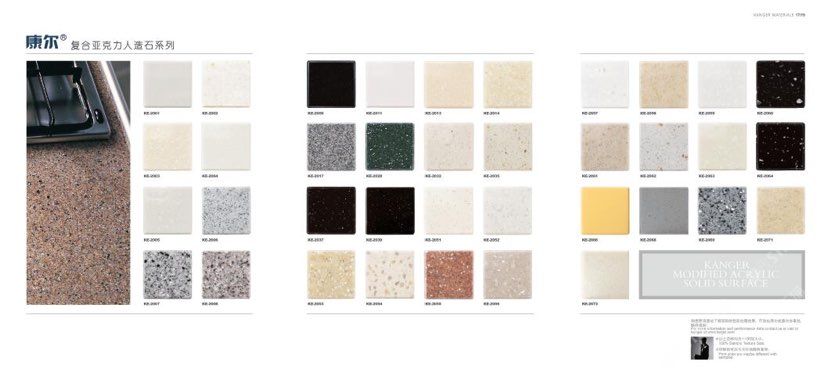 康爾人先后開發(fā)出了色彩豐富的 100% 純亞克力系列,復(fù)合亞克力系列,不飽和樹脂系列,石英石、集成成品臺(tái)面和高分子復(fù)合材料門板系列。產(chǎn)品系列多樣、顏色豐富、品質(zhì)穩(wěn)定、已銷往世界幾十個(gè)國家,深受國內(nèi)外客戶的好評(píng).