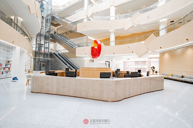東星無機(jī)水磨石引進(jìn)意大利技術(shù)配方及先進(jìn)設(shè)備,回收天然大理石、花崗巖、奢石、玉石、貝殼等為骨料,采用進(jìn)口環(huán)保白水泥與無機(jī)粘合劑,真空壓制而成。產(chǎn)品免燒制、無樹脂、零排放、低耗能、可異形、可定制。在生產(chǎn)中不斷探索改進(jìn),從材料與技術(shù)源頭保證了優(yōu)異的環(huán)保性能。憑借過硬的產(chǎn)品質(zhì)量,節(jié)能環(huán)保的產(chǎn)品屬性,以及東星團(tuán)隊嚴(yán)謹(jǐn)精煉的工程服務(wù),東星無機(jī)水磨石品質(zhì)經(jīng)嘉興森林火車站、鄂州臨空經(jīng)濟(jì)區(qū)產(chǎn)業(yè)服務(wù)中心、深圳地鐵、杭州地鐵、嘉興黨群服務(wù)中心、福州兒童醫(yī)院、成都機(jī)場天府空港酒店,以及利郎男裝、櫥柜品牌商業(yè)空間等一系列大型優(yōu)質(zhì)項目的驗證。