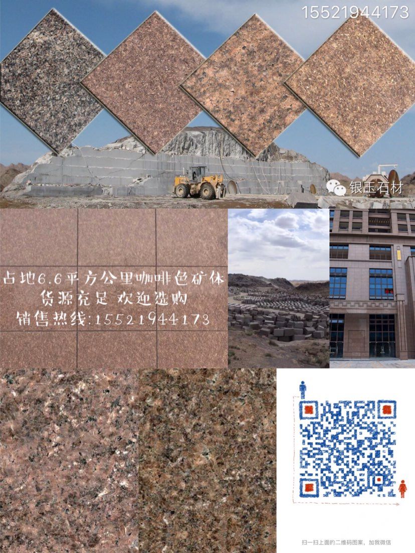 新疆銀玉石材集團(tuán)有限公司(新疆勝拓石材);本集團(tuán)是一家集石材礦山開采、板材(含異型石材)加工、銷售、出口及石材研究于一體的專業(yè)性石材開發(fā)企業(yè)集團(tuán),擁有六家直屬企業(yè)和一個(gè)研究所。銀玉集團(tuán)在哈密市奧莫爾塔格南擁有開發(fā)權(quán)的花崗巖石礦區(qū),該礦區(qū)主要出產(chǎn)商品名稱為“奧莫爾咖啡鉆,金鉆,細(xì)啡鉆”花崗巖飾面石材荒料(經(jīng)國家石材質(zhì)量檢測中心評(píng)定為A類裝修材料,產(chǎn)品產(chǎn)銷與使用范圍不受限制),該礦點(diǎn)荒料資源儲(chǔ)量5000萬m3。集團(tuán)擁有一批優(yōu)秀的管理人員及技術(shù)精湛的員工隊(duì)伍,礦區(qū)已進(jìn)駐八個(gè)開采隊(duì)伍,共計(jì)二百余人,同時(shí)引進(jìn)國內(nèi)外先進(jìn)水平的生產(chǎn)設(shè)備,集團(tuán)在哈密市有色金屬工業(yè)園擁有2條板材生產(chǎn)線,配備40臺(tái)液壓16片鎖緊柱式及橋式切石機(jī)、8臺(tái)20T全自動(dòng)花崗巖條板拋光機(jī)和4套紅外線自動(dòng)橋式切邊機(jī),占地200畝,年產(chǎn)量200萬m2。以|S09000質(zhì)量管理體系來規(guī)范生產(chǎn)的每一環(huán)節(jié),建立了完善的質(zhì)量管理體系,保證了生產(chǎn)\