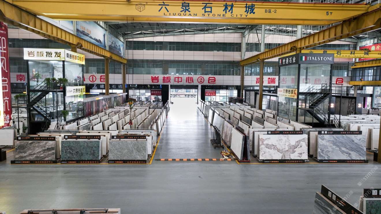 中國江蘇南通六泉石材城3號通道六泉巖板中心倉