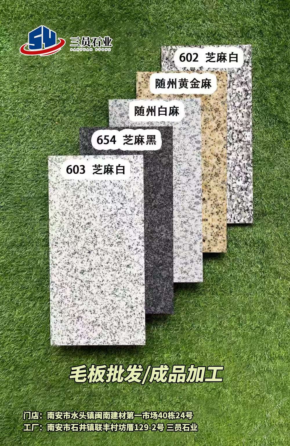長泰654芝麻黑毛板批發(fā),成品加工,隨州白麻,黃金麻,毛板大批發(fā)商,門店位于水頭閩南建材市場40棟24號,加工廠位于延平大道聯(lián)豐村129-2號,配有專業(yè)Cad技術(shù)員,跟單員,歡迎新老顧客光臨。18965769150