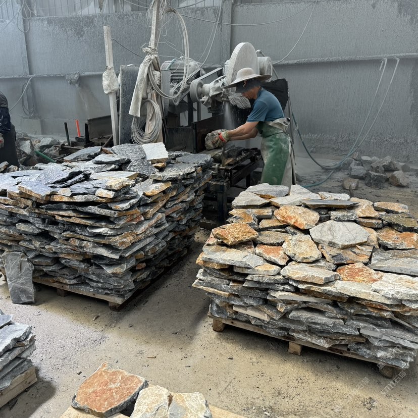 公司是集生產(chǎn)、銷售各種天然板巖、文化巖、蘑菇石、、砂巖、機制卵石和古典巖的專業(yè)廠家,廠區(qū)座落在礦山腳下,礦廠資源極其豐富