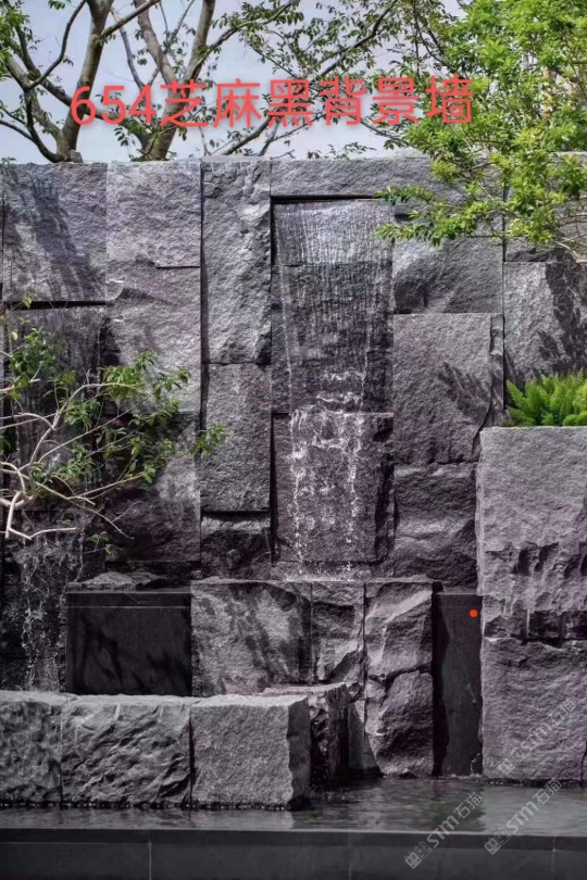 新老礦芝麻黑灰白自然面背景墻小方塊馬蹄石