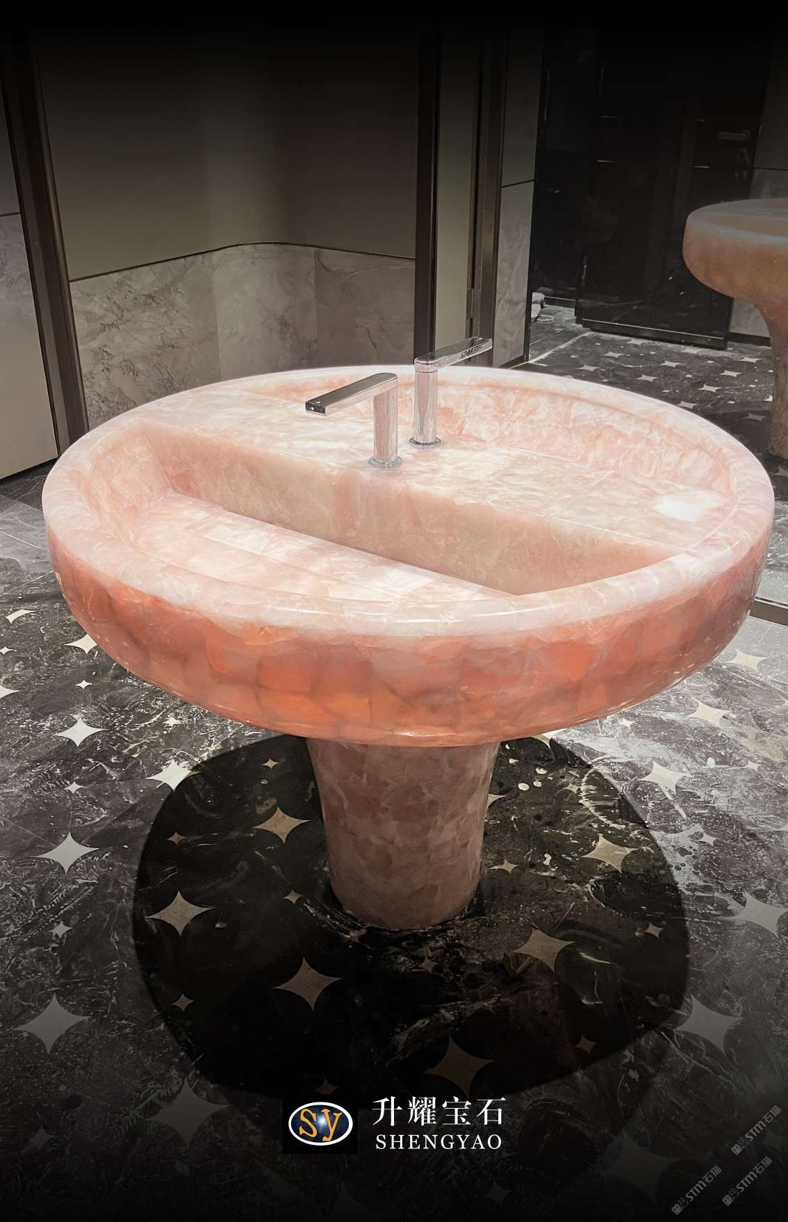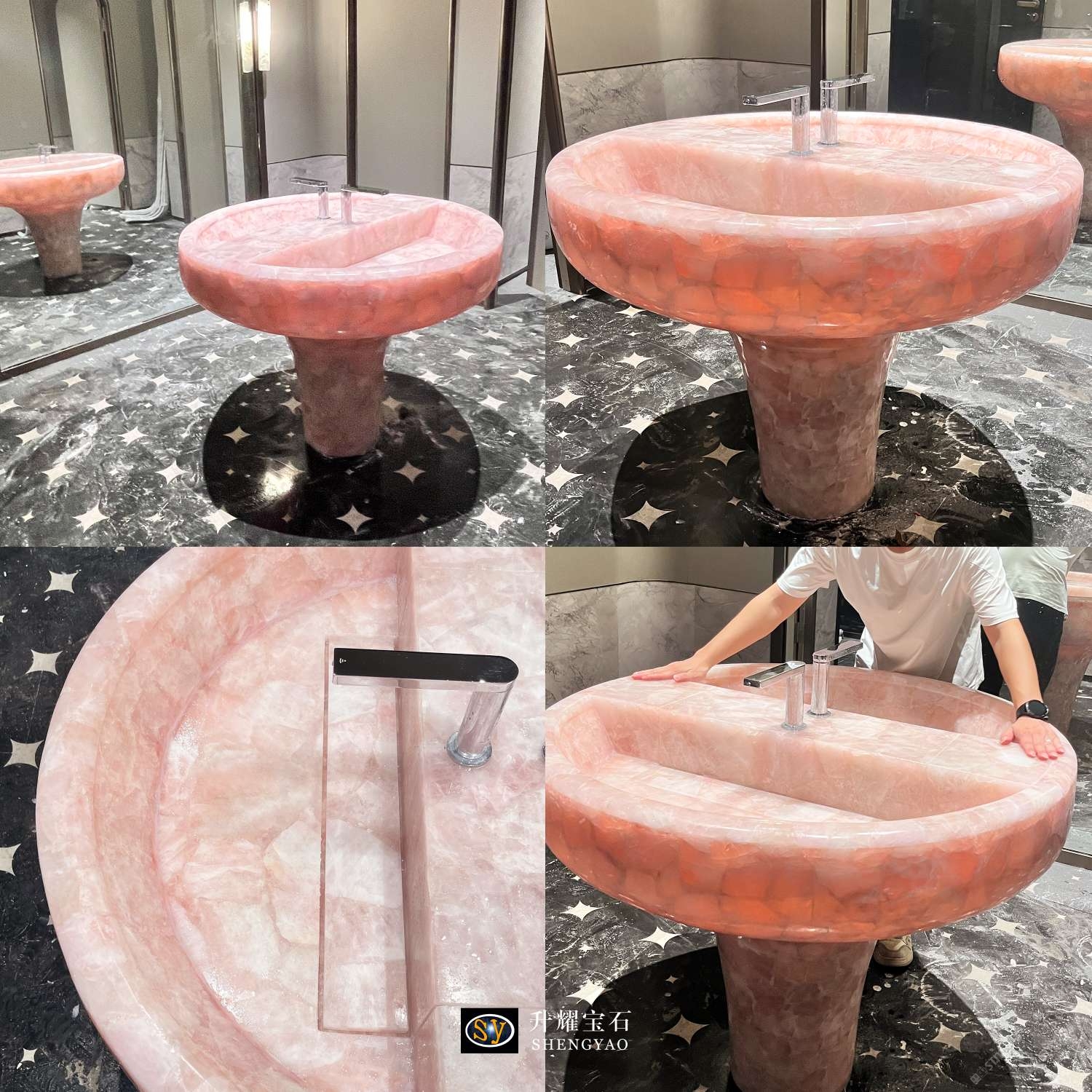 發(fā)布信息: 這是一款用粉水晶制作而成的洗手臺,根據客戶需求定制尺寸及形狀,