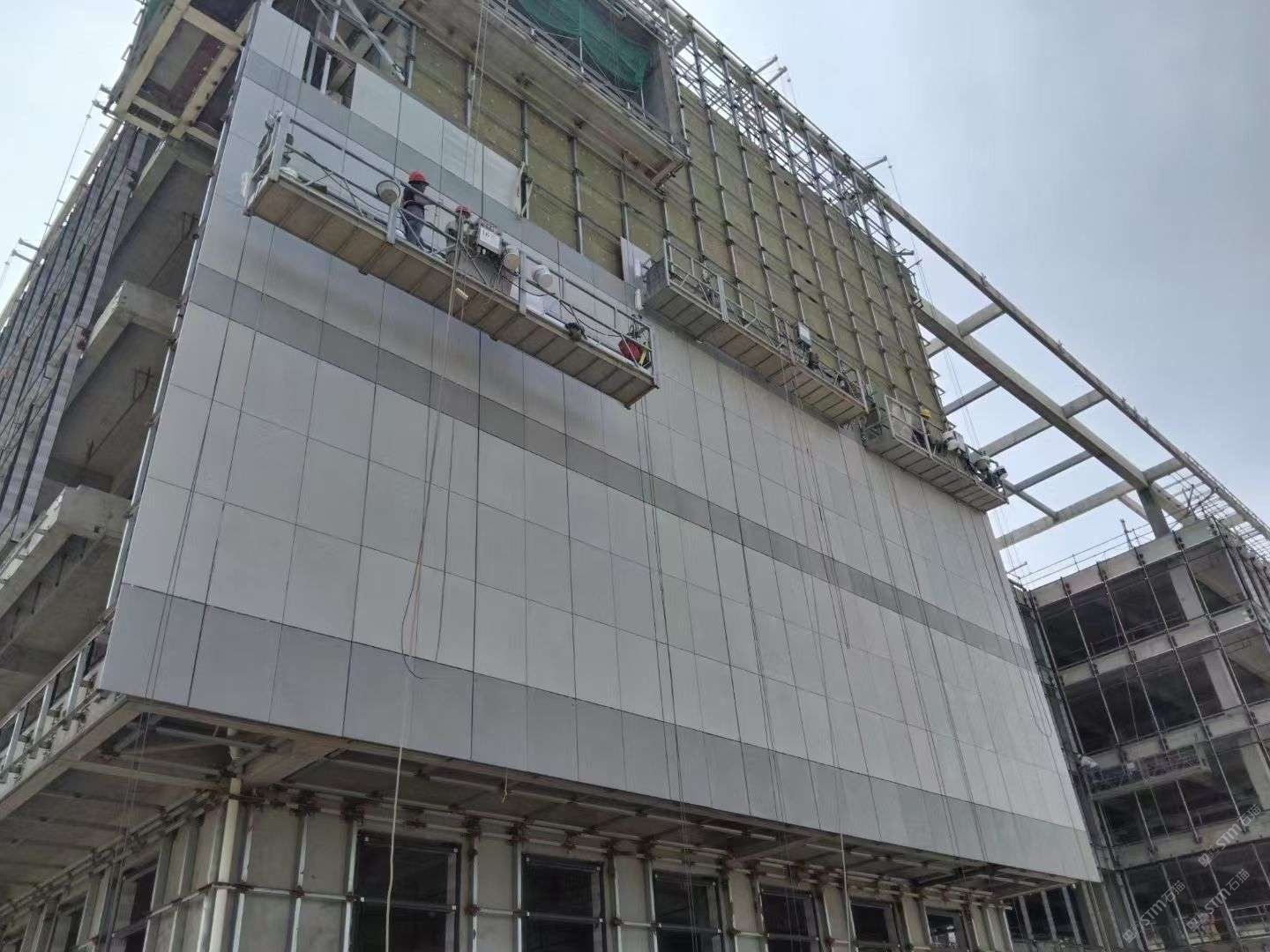 綠夫人無(wú)機(jī)泥客石清水板施工現(xiàn)場(chǎng)