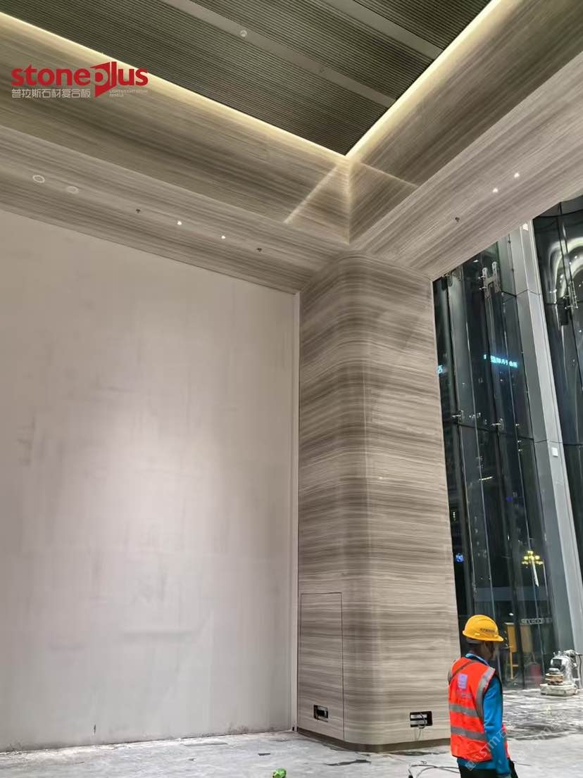 發(fā)布信息: 澳門中心位于廣州市黃埔區(qū)魚珠片區(qū),項(xiàng)目定位為商業(yè)商務(wù)綜合體打造以港澳特色為主的、有國際影響力的科技金融和數(shù)字經(jīng)濟(jì)總部基地,并大力引入澳門文化和商業(yè)業(yè)態(tài),打造充滿澳門風(fēng)情的文創(chuàng)藝術(shù)街區(qū),實(shí)現(xiàn)科技金融產(chǎn)業(yè)一體化、粵澳葡三地合作一體化。 其中大樓室內(nèi)墻面采用白木紋復(fù)合鋁蜂窩,預(yù)埋螺栓打孔后再進(jìn)行復(fù)合,到現(xiàn)場進(jìn)行干掛安裝;包柱采用白木紋復(fù)合鋁蜂窩平板拼弧工藝,對(duì)手加工工藝要求較高,我們普拉斯加工對(duì)品質(zhì)的追求與現(xiàn)場的安裝效果相得益彰。