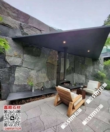 芝麻黑自然面背景墻流水石水景石材流水幕墻石皮背景墻
