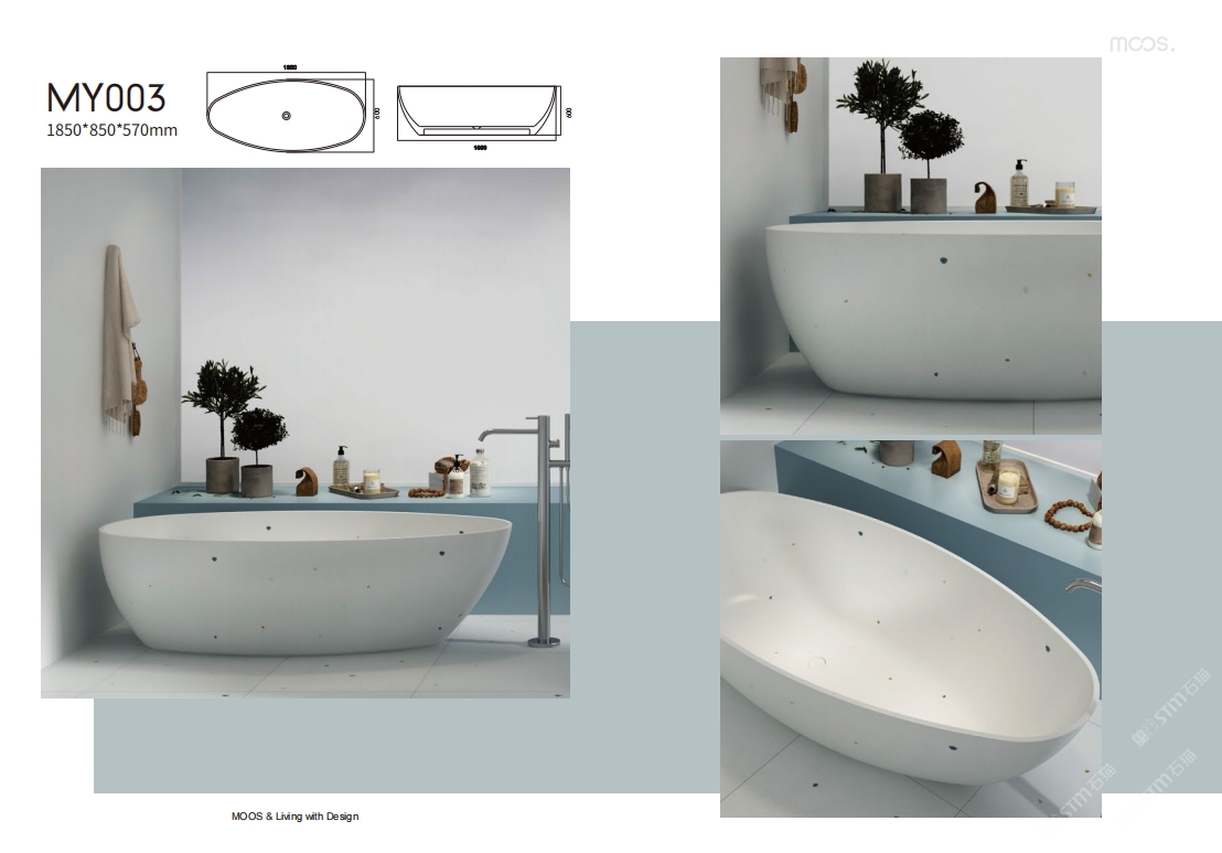 「MOOS魔石衛(wèi)浴」無機水磨石一體化浴缸系列