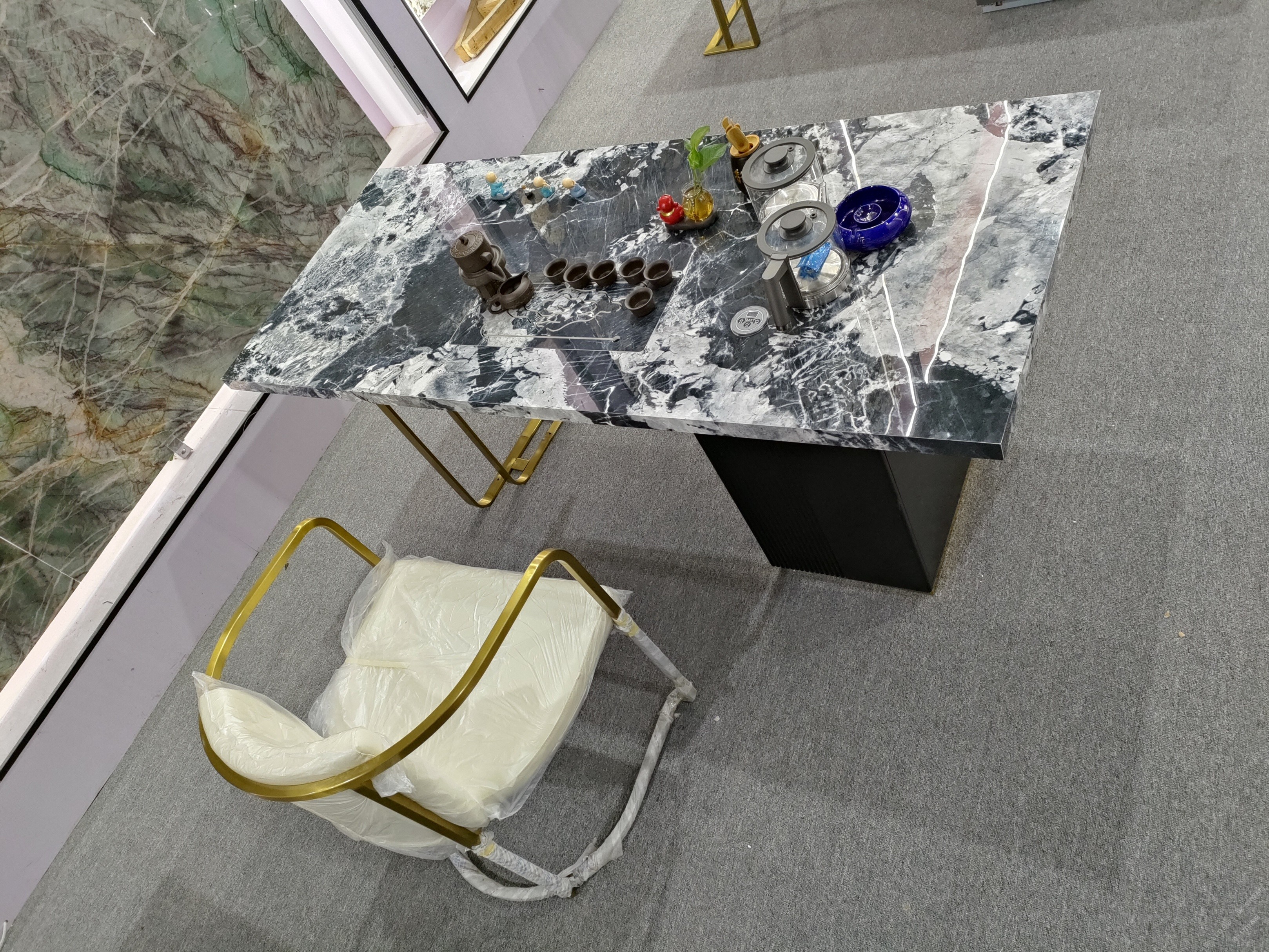 古薩輕奢巖板簡約辦公高檔茶臺