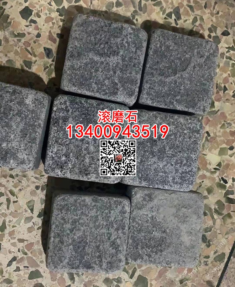芝麻黑滾磨石芝麻灰G655自然面馬蹄石小方塊滾筒石
