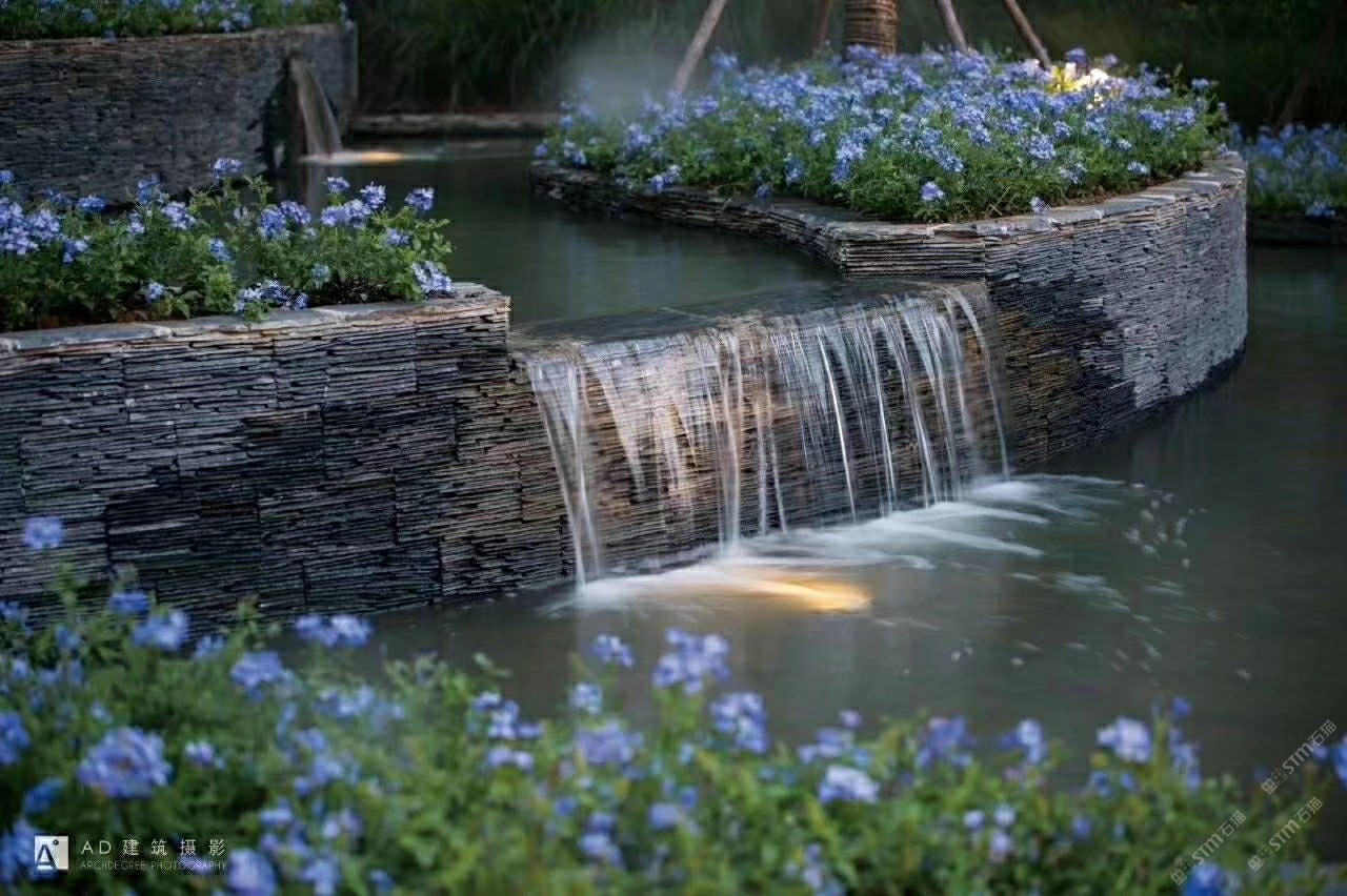 湖南長沙流水板波浪板水景駁岸河卵石景觀墻