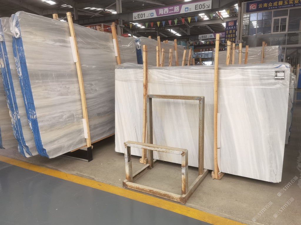 艾菲白木紋荒料1000噸大板10000平方米