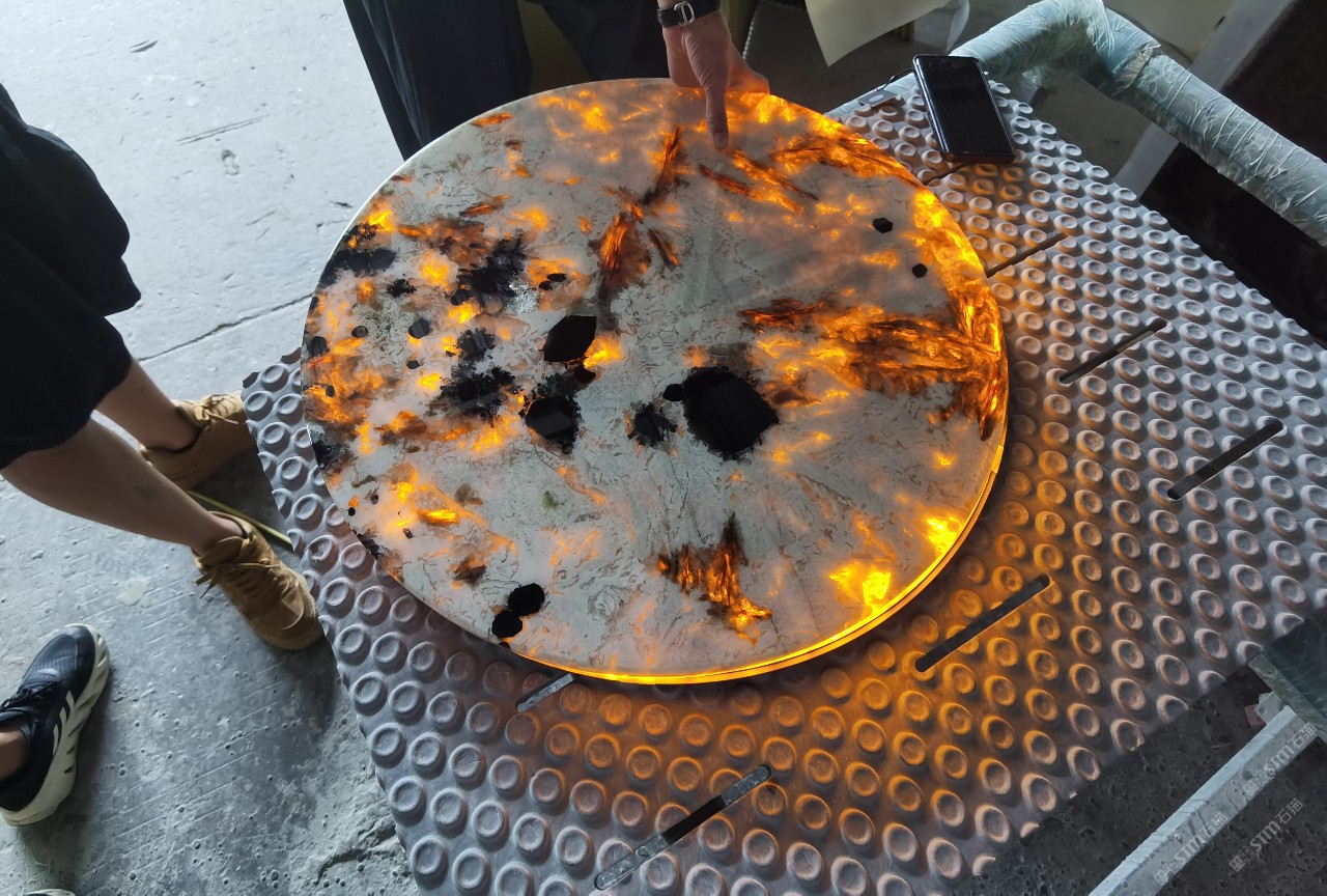 奢石家具廠鏡面封釉工藝源頭廠家高端定制透光奢石