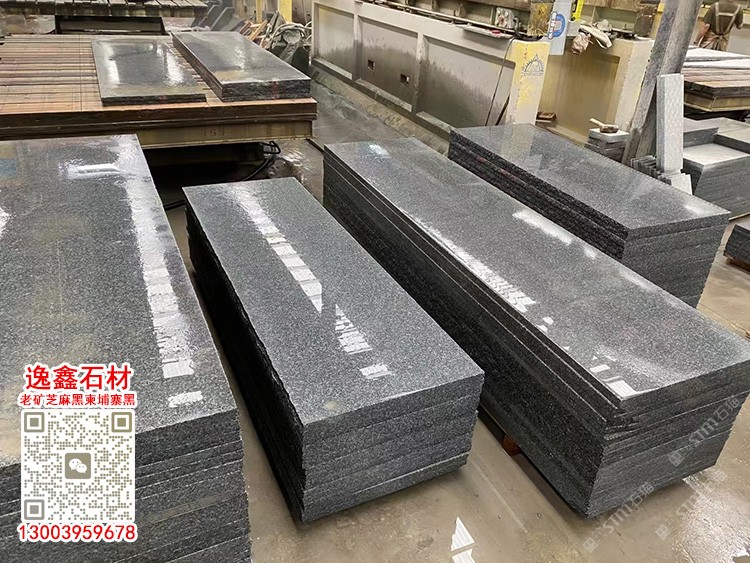 柬埔寨芝麻黑超大平板平臺新礦芝麻黑G654黑色石材