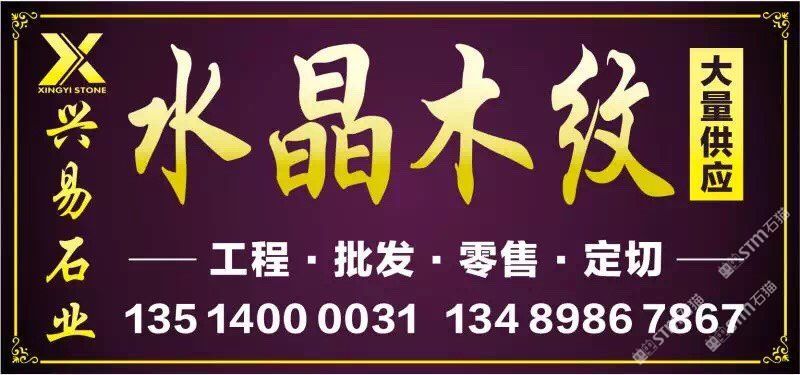 發(fā)布信息: 【興易石業(yè)】—水晶木紋專場 年末鉅惠,互惠互利 全場大板特價(jià)出售 58元起!! 我司專營水晶木紋系列產(chǎn)品:水晶木紋,啡金沙、翡翠木紋。新.白金沙.藍(lán)金沙 工程訂單-零售家裝-單件-單片均可銷售 電話:13514000031 13489867867 銷售點(diǎn): 高時(shí)物流靠近一號(hào)館大門右手路