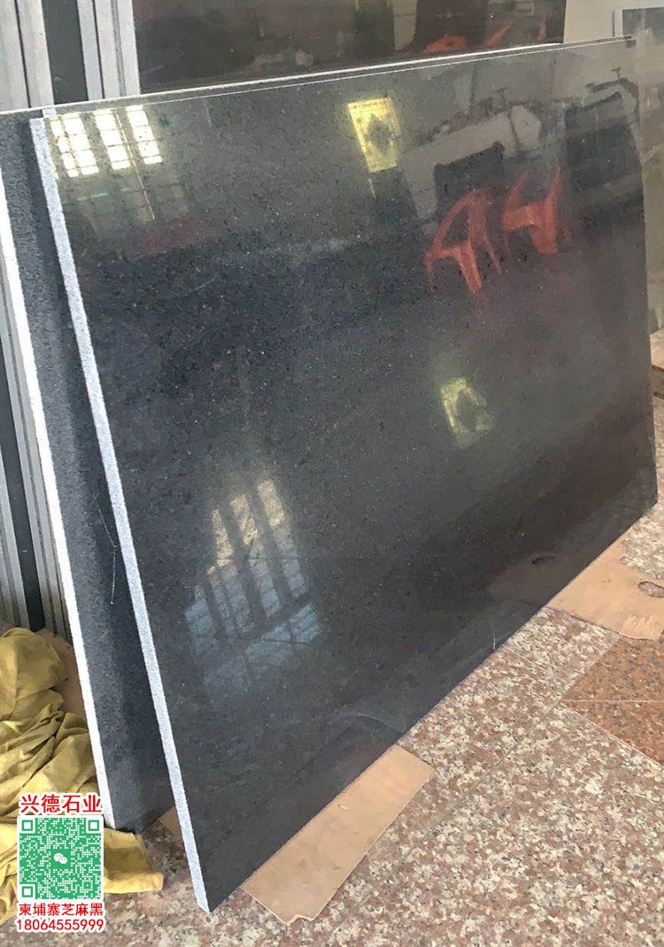 柬埔寨細(xì)花大板面金礦654芝麻黑光面臺面板柬埔寨黑