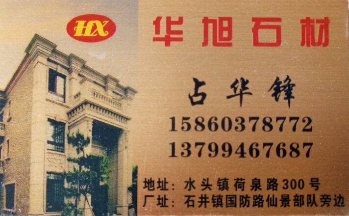 發(fā)布信息: '華旭石材直銷[em]e258130[/em][em]e258130[/em][em]e258130[/em]永定紅,664,654#、623#、648#,蝦紅#等石欄桿…壓頂、線條、將軍柱、雕刻,花盆等,價格合理,歡迎新老客戶來電咨詢~洽談!號碼:15860378772