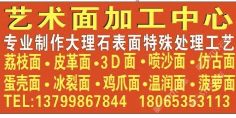 發(fā)布信息: 專(zhuān)業(yè)加工大理石荔枝面,拉絲面,3D面,皮革面,噴砂面,蛋殼面,雞爪面,冰裂面,菠蘿面,溫潤(rùn)面,仿古面,聯(lián)系電話18065353113,