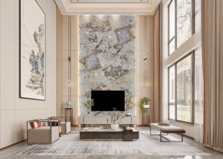 康利德水刀拼花雕刻-莎安娜電視背景墻