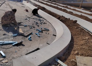 宏德石業(yè),整圓弧形加工,芝麻白樹池壓頂石