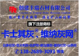 王生石材主營產(chǎn)品:維也納灰,新土耳其灰(老礦),土耳其灰(拿鐵灰),土耳其灰(深色),波斯灰(AP礦),拿鐵灰(新西西里灰),新拿鐵灰,新土耳其灰(拿鐵灰),比薩灰1,深啡網(wǎng),深木紋(巖板),啡網(wǎng)1,啡慕斯,維也納灰(國產(chǎn))企業(yè)地址:廣東云浮海岸石材城