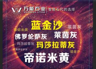 萬能(新萬益)石業(yè)主營產品:帝諾米黃,意大利藍金沙,意大利白金沙,藍金沙,白金沙,普京木紋(淺),藍金沙20,意大利藍金沙2,藍金沙(直紋),藍金沙9企業(yè)地址:福建泉州南安市水頭鎮(zhèn)中閩大理石666區(qū)